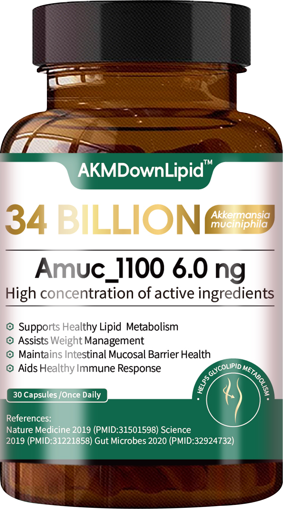 1、高剂量标准的340亿 Akkermansia muciniphila 益生菌(灭活型)